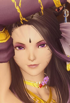 Notable Features: Deep, purple eyes, clan marks on her body, purple highlights in her hair